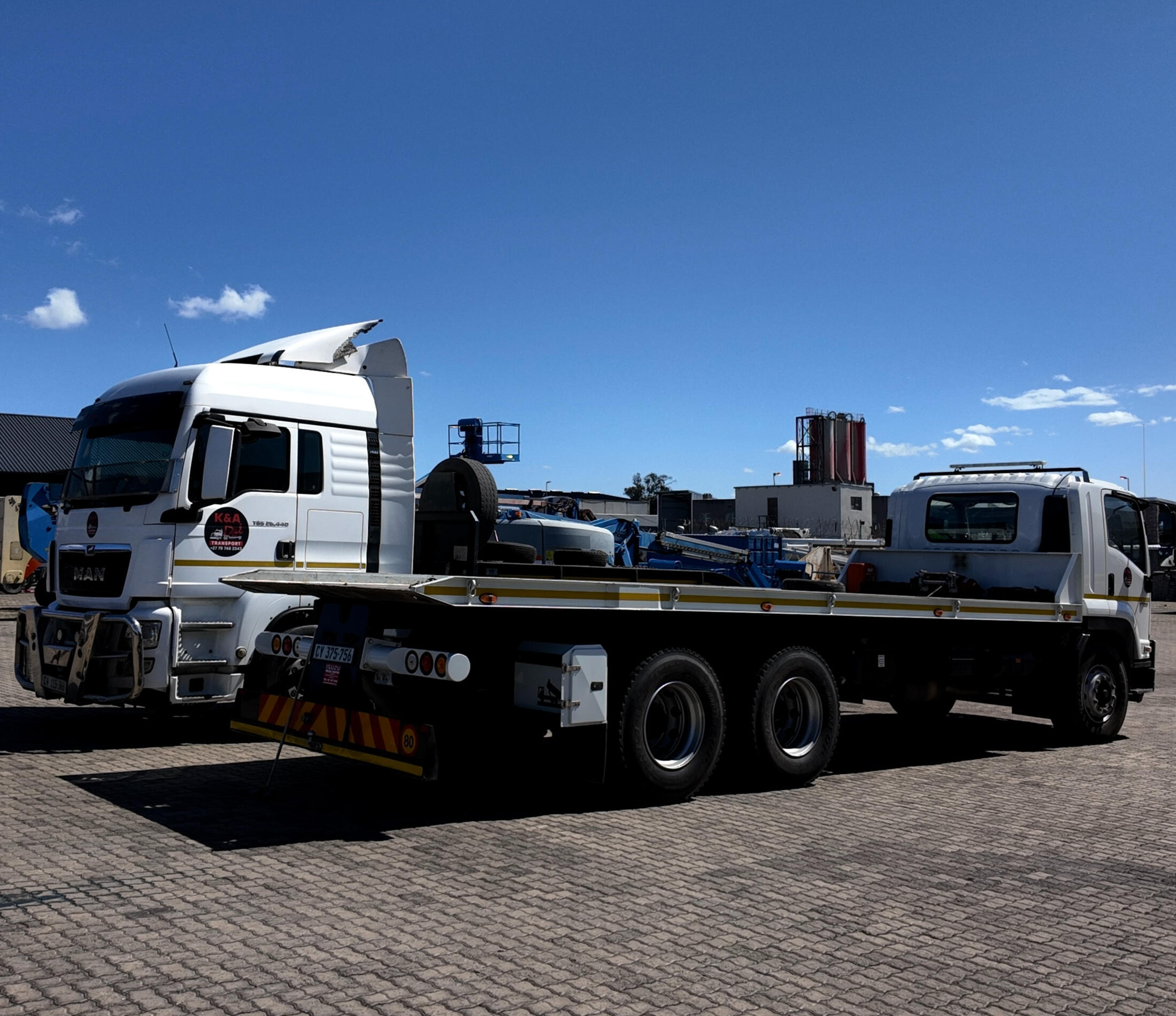 we take pride in maintaining a modern and expanding fleet built for reliability, performance, and safety. As demand for our services continues to grow, so does our fleet — allowing us to serve more clients, cover longer routes, and handle a wider range of cargo with precision and care.Our TrucksOur fleet currently includes two main workhorses that form the backbone of our operations:MAN 30-Ton Truck – a heavy-duty powerhouse designed for large and long-haul loads. With exceptional pulling strength and fuel efficiency, it’s ideal for transporting industrial machinery and freight across the country.Isuzu 12-Ton Double Diff – perfect for medium-to-heavy deliveries, offering excellent stability, maneuverability, and power for both urban and rural routes.
